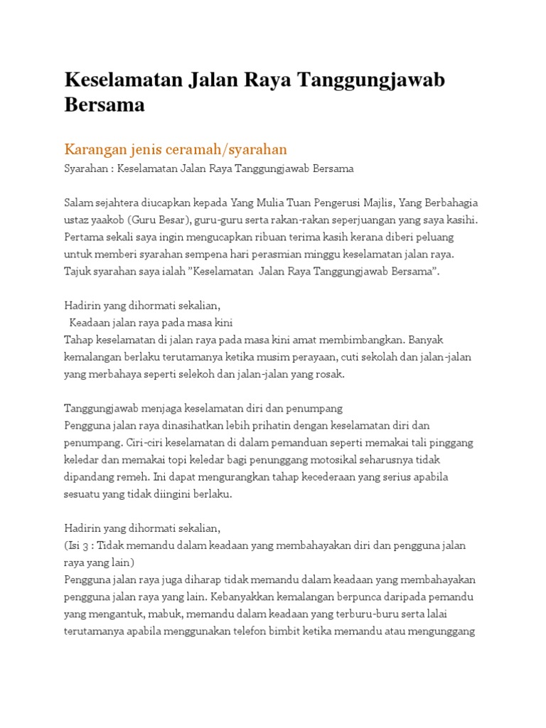 Contoh Contoh Karangan Sekolah Rendah Syarahan Cara Cara Mengurangkan Kadar Kemalangan Jalan Raya