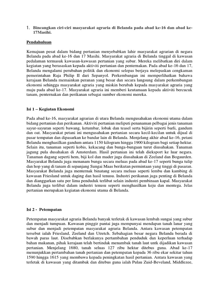 Stpm Sejarah Ciri Ciri Masyarakat Agraria Di Belanda