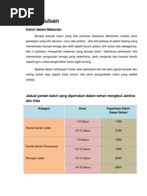 Ketahui Keperluan Kalori Anda Portal Myhealth