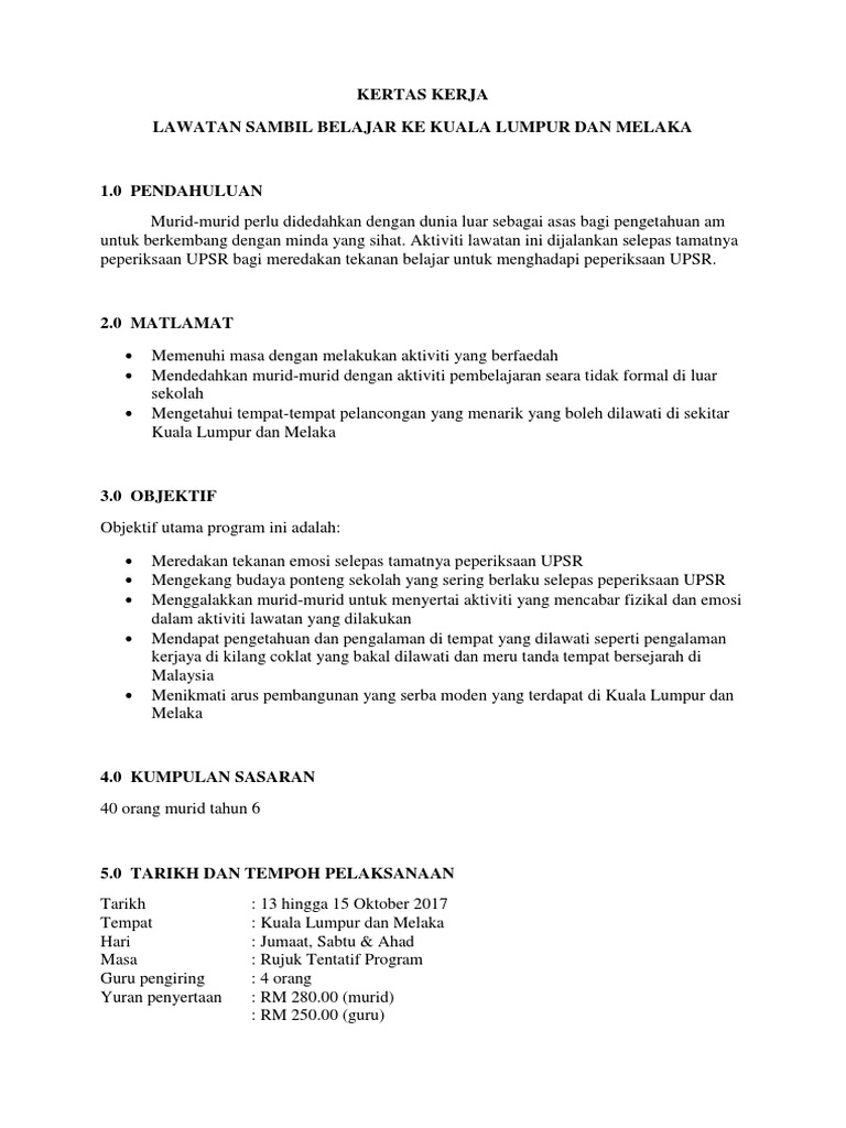 Kertas Cadangan Lawatan Sambil Belajar Ke Melaka Doc