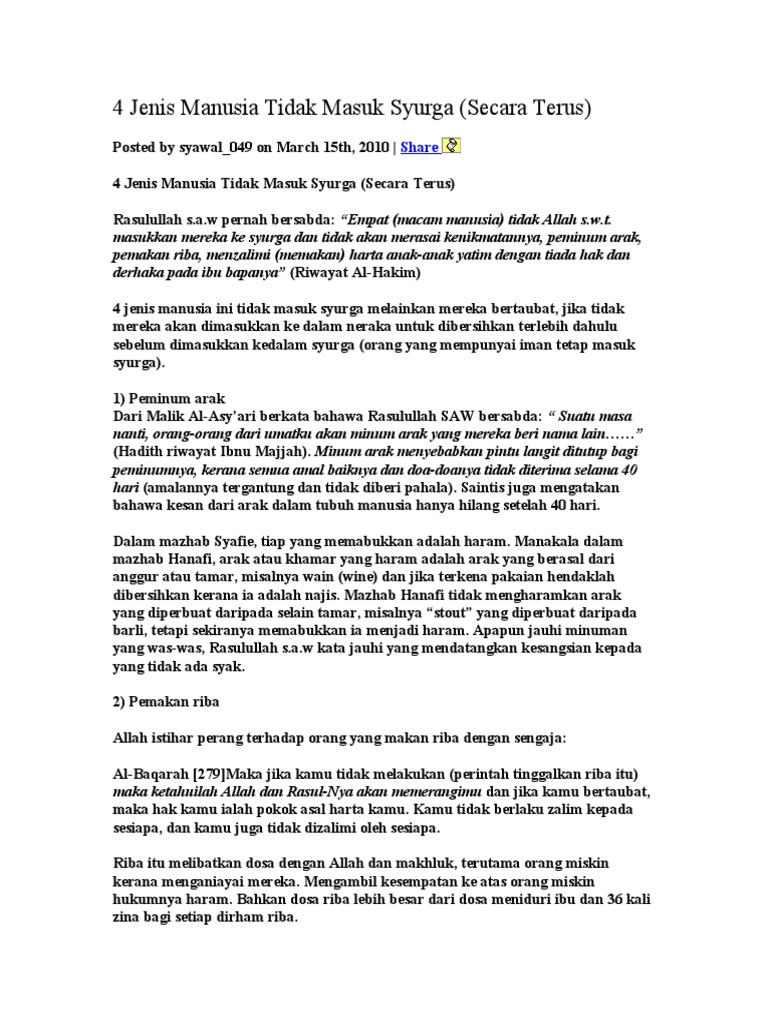 4 Jenis Manusia Tidak Masuk Syurga