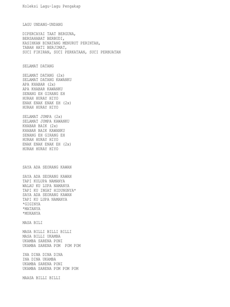 Pengakap Kanak Kanak 58 Koleksi Lagu Pengakap
