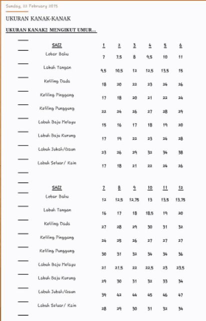 Rujukan Standard Size Untuk T Shirt Kemeja Dan Jubah