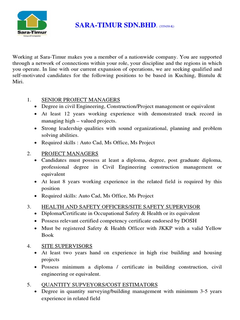 Vacancy Kosong Seluruh Malaysia Jawatan Kosong Sara Timur Engineer Architect Supervisor
