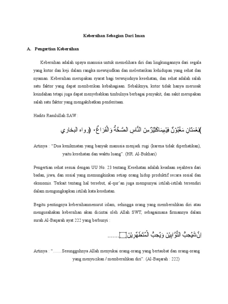 Artikel Agama Kebersihan Sebagian Dari Iman 2 Docx