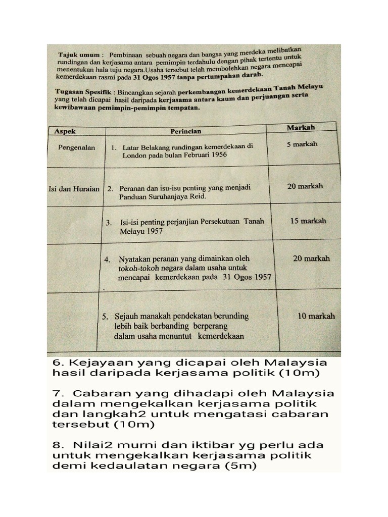 Sejarah Soalan Skema Jawapan Kertas 3 Tingkatan 5