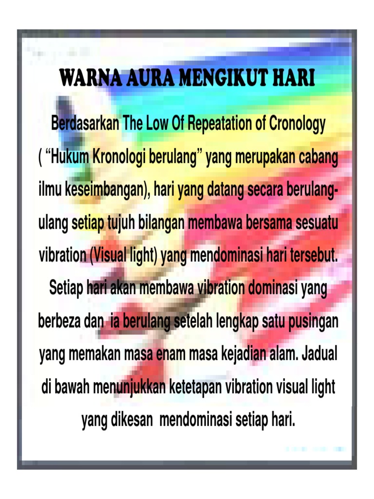 Rahsia Auraku Aura Dan Warna Mengikut Hari